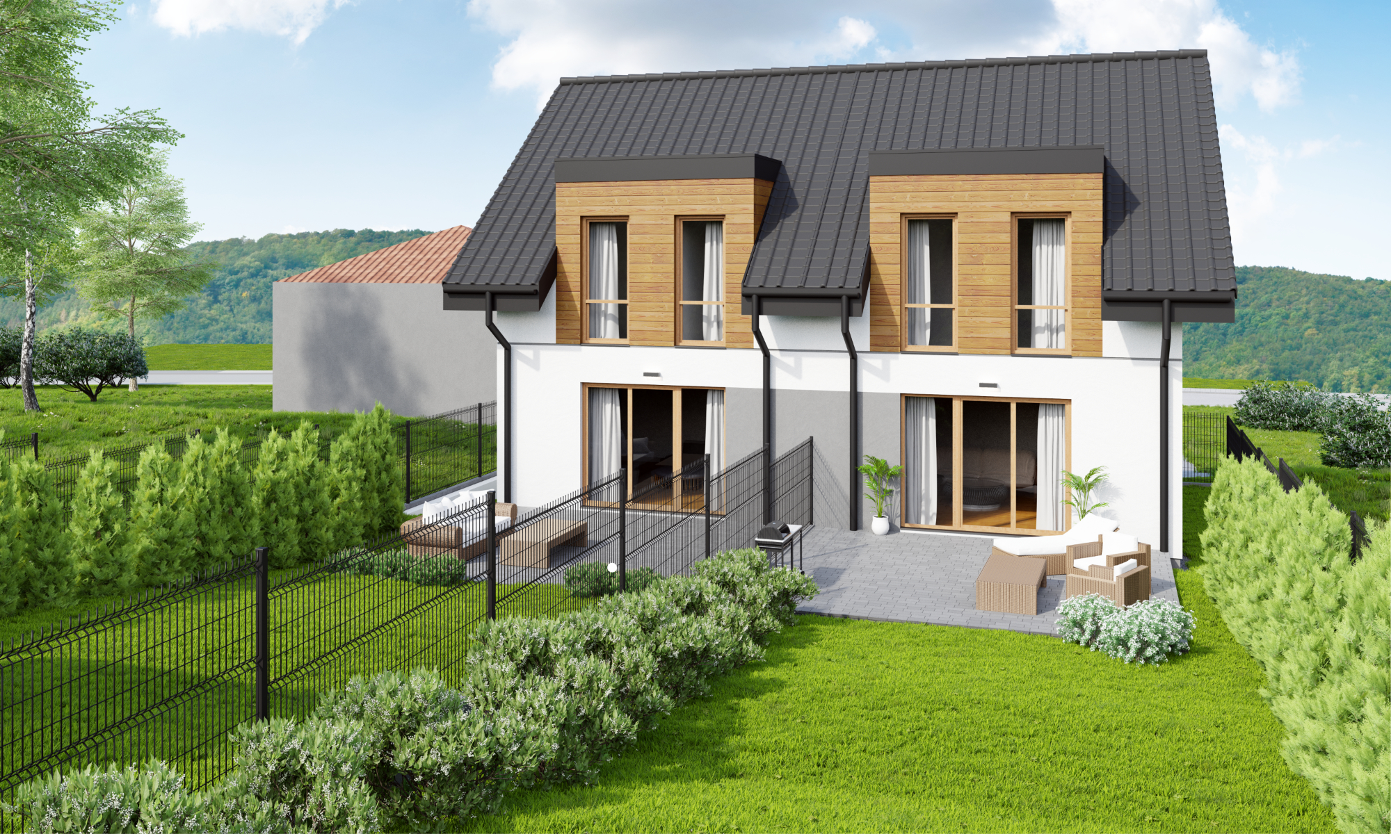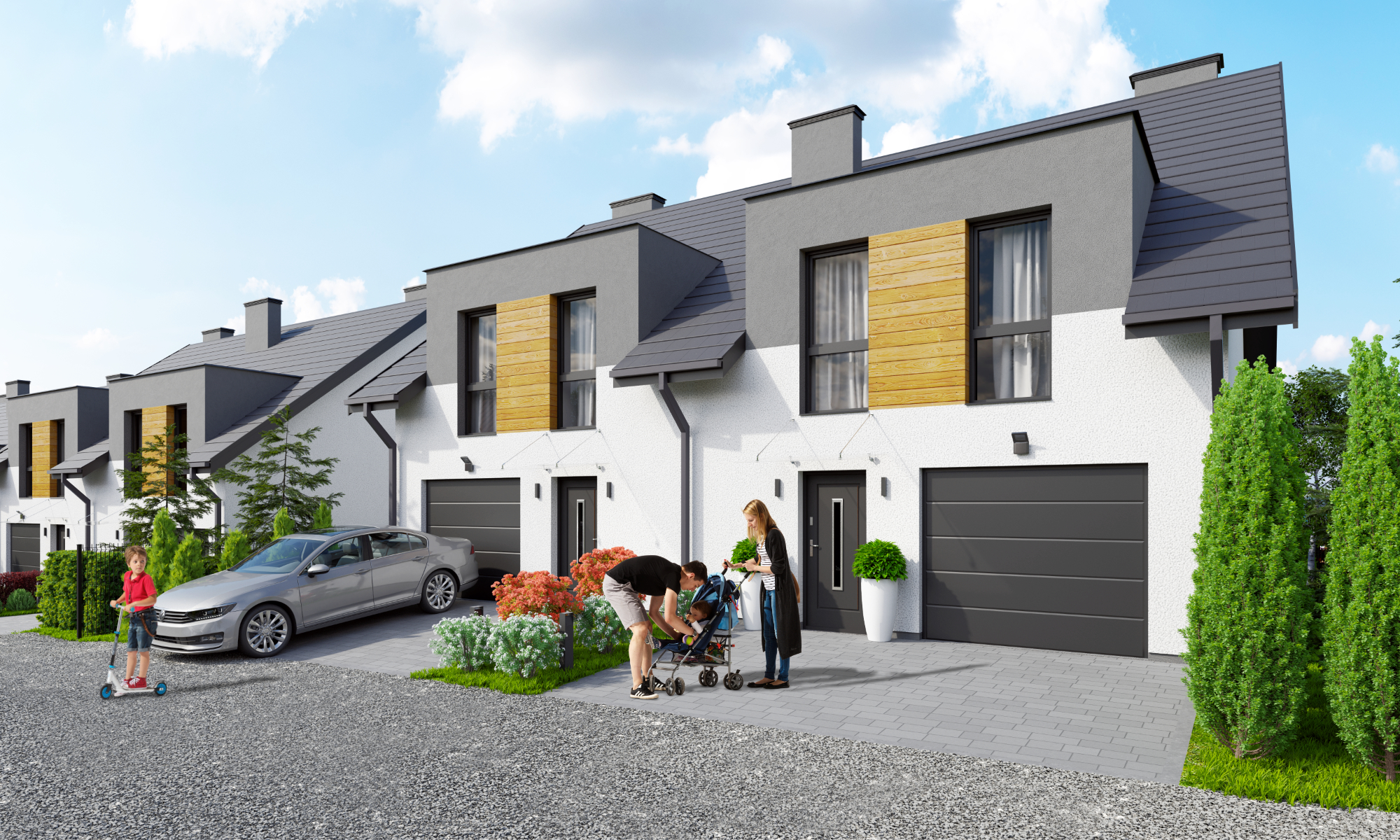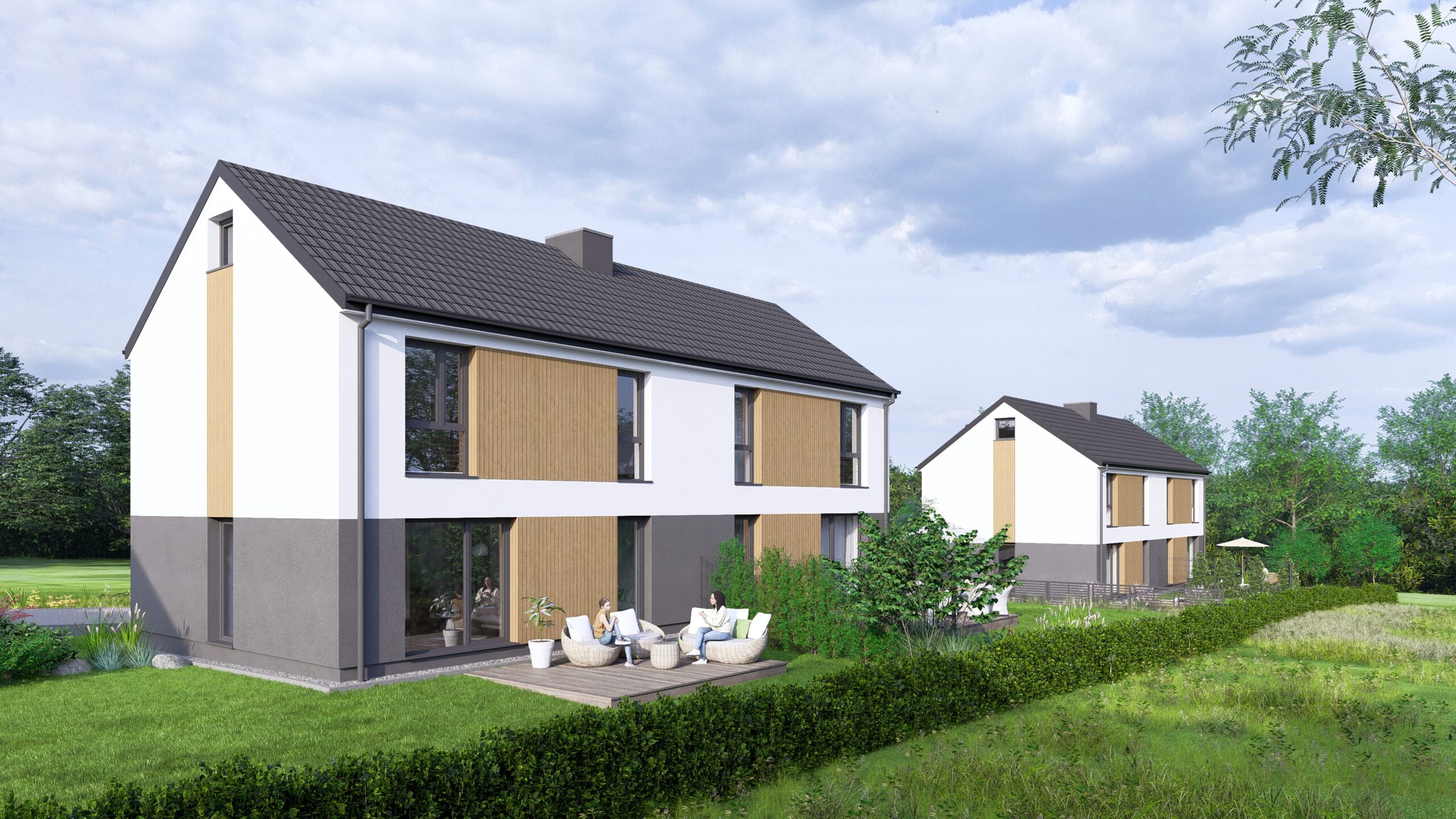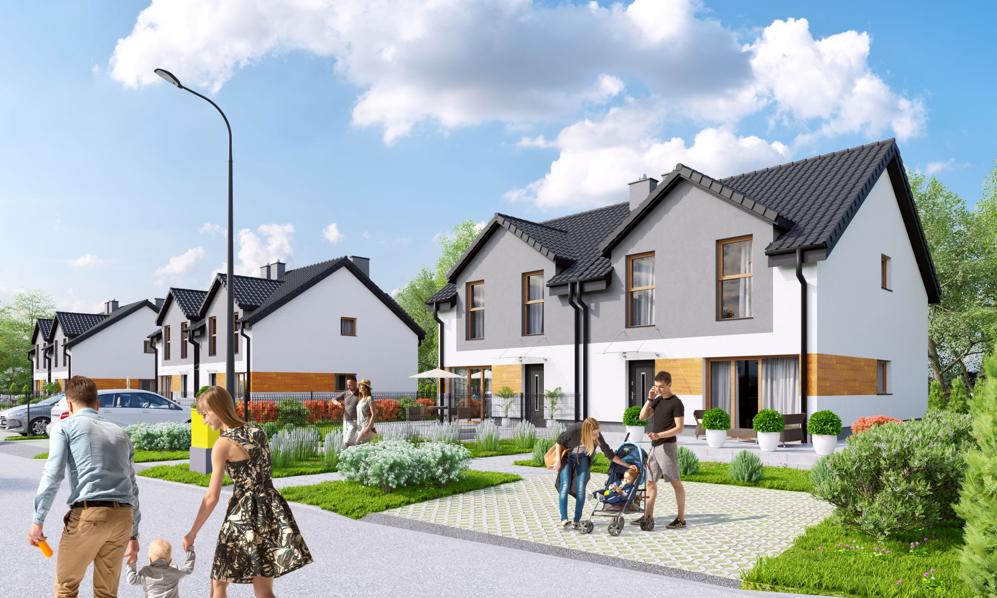 Domy wyróżniają się przestronnymi wnętrzami i funkcjonalnym układem. W ofercie dostępne są metraże od 96 m² do 118 m², a dodatkowo poddasze z oknem do własnej aranżacji – idealne na dodatkowy pokój, gabinet lub strefę relaksu. W zależności od preferencji możliwość wyboru wariantu z garażem w bryle budynku lub zewnętrznymi miejscami postojowymi.