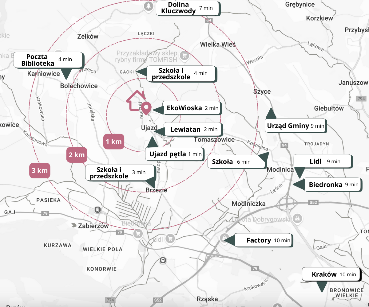 Inwestycja zlokalizowana jest w spokojnej i zielonej miejscowości Ujazd, położonej w południowej części Wyżyny Krakowsko-Częstochowskiej, zaledwie 10 minut od północnej granicy Krakowa.
